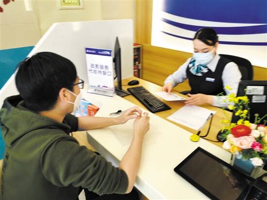 廖先生正在家门口的银行办理政务服务事项 |