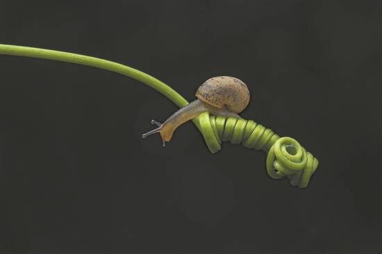 蜗牛本不属于昆虫,但如果可以,我愿意为它借一副翅膀,让它能像大多数昆虫一样,自由飞翔。 这个软体动物,似乎背负了动物世界的所有苦难,它总是慢吞吞的,吃力前行。童话世界里,它的形象也因而走向两个极端,要么是无所事事无所作为的反派,要么就是最敬业、最励志的代表。这个世界,谁都不容易,何况没有翅膀,甚至连手脚都没有的蜗牛?歌手周杰伦曾倾情为它歌唱:“我要一步一步往上爬,在最高点乘着叶片往前飞。”我就喜欢它这个永不气馁的品质。 就像这只蜗牛,它爬到了藤蔓的顶端。一圈一圈的藤蔓啊,看起来多像一段乐谱。大自然总是按照它自己的意愿,奏出最美的乐章。此刻,这只孤单的小蜗牛,就像这部乐章里的一个音符,一段旋律;又甚或它把自己想象成了一个乐队指挥,用它的一对触角,指挥着藤蔓、枝叶和微风,来一场草木丛中的大合唱? 每一只蜗牛,都背负着一个巨大的壳,那是它们的家,这些壳,有的呈宝塔形,也有的呈陀螺形,还有的呈烟斗形,与我们人类一样,蜗牛们总是把自己住的房子打扮得漂漂亮亮。 尤其令人惊讶的是,蜗牛竟然是世界上牙齿最多的动物,一只小小的蜗牛,往往拥有数万颗牙齿,可惜的是,它们的这些牙齿,都无法咀嚼,失去了牙齿的本来意义。不过,亲爱的蜗牛,这没有关系,也许轻轻叩动牙齿,你们就能弹奏出这个世界最复杂最动听的乐曲。那是你们的旋律,唯有你们自己能听见,并为之沉醉。
