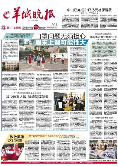 按照广东省教育厅的统一安排,全省高三、初三年级学生4月27日返校。学生口罩是配发还是自行购买、学生进校如何检测体温、突发情况如何应对、周末是否上课?羊城晚报记者独家从权威渠道获悉,作为珠海主城区,