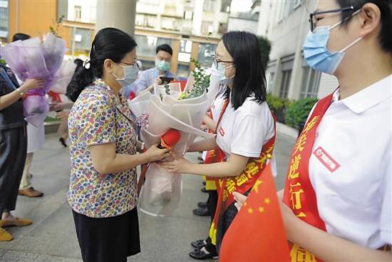 疫情期间,佛山市妇幼保健院先后派出19名医护人员支援湖北和佛山市定点收治医院。队员们不畏艰险,圆满完成了既定任务。佛山市妇幼保健院党委书记、院长郭晓玲表示:“今天我们在这里举行简短而隆重的欢迎仪式,欢迎抗疫英雄返岗。在党和人民最需要的时候,我院派出了19名医护人员,驰援武汉、支援市四,在这场没有硝烟的战争中,我们的白衣战士英勇无畏、义无反顾,留下了年迈的父母和年幼的孩子,舍下了妻儿、舍下了家庭,舍小家为大家,奔赴到抗疫前线。”郭晓玲说,在出发之前,全院医护人员嘱咐队员们一个也不能少, “今天看到你们平安归来,全院同志对你们致以崇高的敬意和衷心的感谢!” 该院支援武汉医疗队队队长、重症医学科主治医师陈源浩表示,平安归来后将总结经验,继续发扬不畏艰险、艰苦奋斗、相互照应的抗疫精神,在以后的工作中再创佳绩、再立新功。 ⬅院领导为队员们送上鲜花