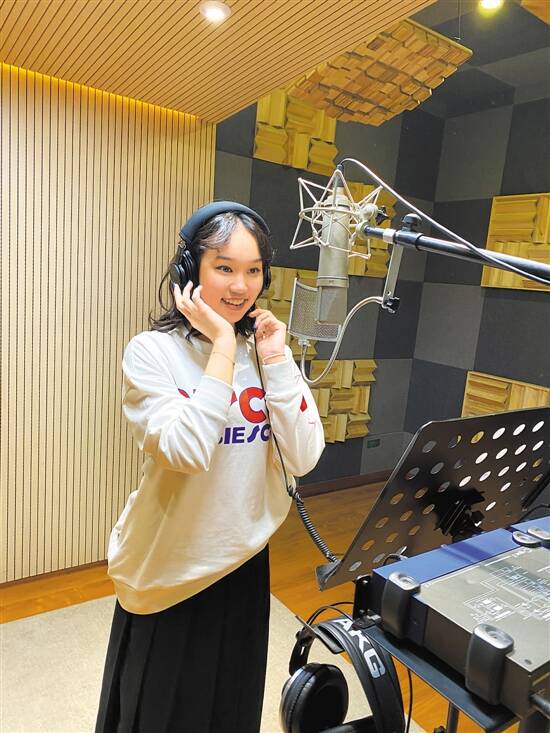 夏艺洋在录制歌曲 |