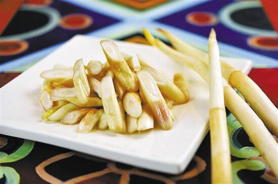 水中象牙是红河州建水县的特产,又叫草芽,用来入馔的是它幼嫩新生的根状茎。云南民谣里提及的“云南十八怪,席上珍馐象牙菜”,说的就是它。