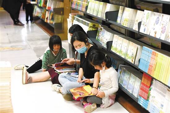 世界读书日深圳中心书城内亲子共读场景 羊城晚报记者 王磊 摄 |