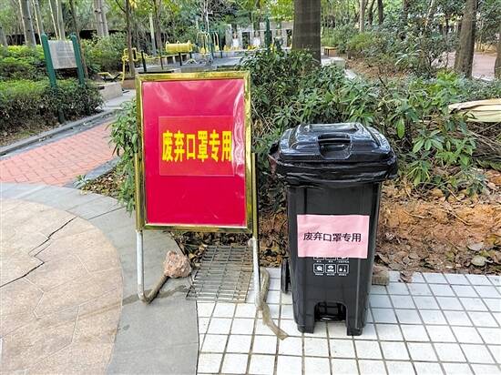 口罩回收专用桶 羊城晚报记者 刘云 摄 |