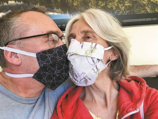 樱木和丈夫,他们戴的是手工缝制的口罩 |