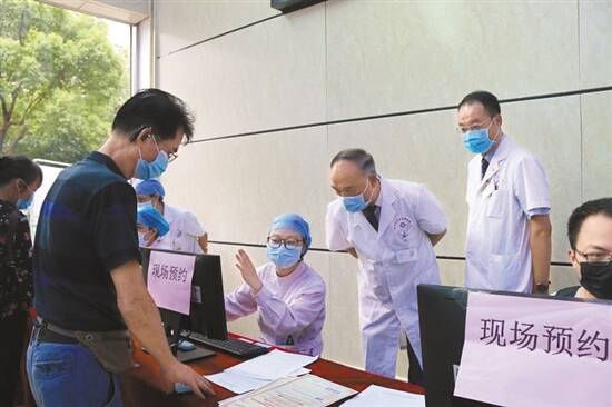一大早,珠海市中西医结合医院领导班子带着相关科室人员,到现场统筹协调推进预约诊疗服务工作。记者在珠海市中西医结合医院门诊看到,往常4个挂号窗口已经调整为3个取号窗口和1个挂号窗口,这是考虑到老年人和残疾人预约挂号可能存在困难,为了照顾特殊群体的需求而开放的人性化服务专窗。在门诊大厅,临时增开的“现场预约”专区,4个窗口的工作人员正在帮助没有提前预约的患者进行现场预约。 “之前我女儿就告诉我要预约挂号了,我提前电话预约了。”在内分泌科,67岁的李阿姨通过电话预约早上10时的号,10时05分就看上医生了。“预约果然更方便啊,我不用一大早就来排队挂号了。”李阿姨惊喜地说。 “我刚刚皮肤突然过敏了,我就赶紧来看,我昨天并不知道今天会生病啊,我怎么预约呢?”在现场,陈小姐有些着急。党员志愿者指引陈小姐通过“现场预约”窗口,预约到了半个小时以后的号。“这样还是挺方便的,不过我以后来看会先在手机上预约了。”陈小姐说。 珠海市中西医结合医院有关负责人介绍,实行非急诊全面预约制度,目的是为了供患者提前安排就医计划,以减少患者医院等候时间。当前,珠海市正常医疗服务逐步恢复,到医院就诊的患者不断增加。为贯彻落实新冠肺炎疫情“外防输入、内防反弹”的防控策略以及常态化疫情防控工作部署,避免交叉感染,减少就诊人员的聚集,自5月6日起,全面实施非急诊预约诊疗,除老年人、残疾人等特殊人群外,不再接受其他患者的现场挂号。