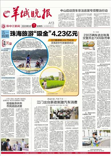羊城晚报讯 记者陈卓栋,通讯员江文旅、谭耀广摄影报道:记者6日从江门市文广旅体局获悉,据第三方平台大地云游分析,五一假期江门市共接待游客95.04万人次,旅游收入5.75亿元。除了一些景