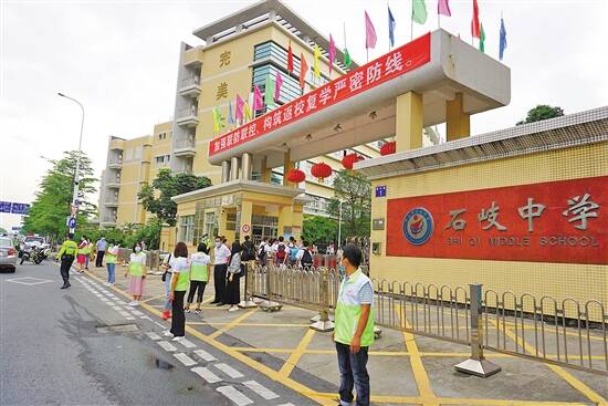羊城晚报讯 记者林翎、实习生刘淳,通讯员曾珺摄影报道:5月11日上午,中山市第二批学生启程返校,返校学生数11.2万人,教职工9800人。第二批的返校工作要求教职员工和学生持有粤康码“绿码”才可以返校,并且返校教职工和重点地区旅居史的学生要接受核酸检测。 5月11日上午,中山南区良都中学和侨中英才学校第二批返校的孩子们踏着晨光如期返校。两所学校把学生按年级、班级等分成若干个批次组织学生依次返回校园。在老师志愿者的指引下,学生们戴好口罩,从学校设立的专用通道保持安全距离,分批次、分班级接受体温检测、行李消毒、手部清洁后有序进入校园。学校保安、教师志愿者等协助交警一道对校门口接送学生的家长进行及时的疏导,防止校门口周围出现人员扎堆聚集,避免交叉感染,以保障师生的安全。 为减轻疫情对同学们造成的心理困扰和负面影响,让学生健康平稳地过渡到正常的学习模式,在学生顺利返校并安顿好之后,两所学校均以班级为单位开展了“复学第一课”的主题班会,引导学生以积极的心态面对疫情防控,增强学生自我心理防护能力,提高复学适应力。 羊城晚报记者从多所学校了解到,第二批学生返校时仍须戴口罩以及提供粤康码“绿码”。第二批学生返校后,高三、初三年级将不再实行拆分班级上课、错位间隔住宿的方式,所有学生的课室、住宿都恢复原位,但户外活动、食堂的用餐时间和方式会继续分散、分批错峰使用。 在5月9日下午,中山市华侨中学初中部的初二、初一年级家长将行李送至生活区门口,由搬家公司的15名已通过核酸检测的员工将行李搬上楼。第二批学生返校后,全校学生都将恢复原来的课室和住宿位置。这周起,三个年级的学生上学放学、用餐时间也会分批,饭堂桌子均要求间隔、同向就座,每批用餐中间还有5分钟的清洁时间。高中部的学生课室将全部按原有班级上课,课桌已排列为单人单座。课室、宿舍基本恢复常态管理,但饭堂用餐还需错峰,学生将按年级分三批次就餐。