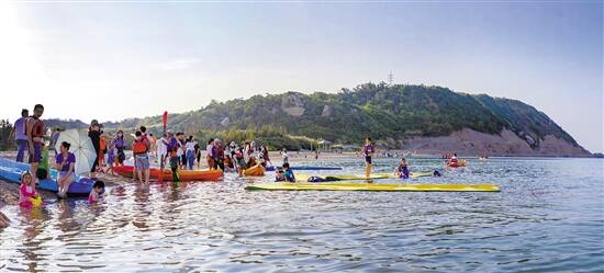 游客在桂山岛海豚湾体验水上运动 受访者供图 |