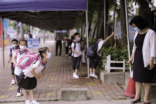 吴国颂 杨雪薇 5月18日,珠海市第三批学生顺利返校复课。12.7万名小学1-3年级和中职学校学生重启校园生活。至此,珠海除幼儿园、高校外,其余学生已经全部返校复课,返校复课学生总人数约31万人。 有孩子叫老师“园长妈妈” 5月18日上午,珠海金湾区14所小学1-3年级1万余名学生回到校园。至此,该区18所中小学顺利“重启”,共2.4万余名学生返校复学。上午7时20分,在金湾虹晖小学门口,学生们正有序进入学校。为了避免人员聚集,学校开辟了两条进校线路。虹晖小学校长李彩芳介绍:“我们在校门外增设了40个水龙头,要求所有学生进校前必须洗手。” 三年级的小炜说自己当天6点钟就起床了,“我好想快点回到教室上课,我特别想念数学张老师!”和小炜一样迫不及待要回到校园的还有一年级学生小城。他说自己从前一天晚上就特别兴奋,当天早早就起床了,并催父亲早点送他去上学。 在现场,还出现了不少一年级的小“懵”娃,竟然忘记自己的班级。一年级的小亿在学校走廊里东张西望,徘徊不定。老师上前询问才知道,原来他忘记自己哪个班了。小亿想了好一会,终于记起来了自己是(7)班的,在老师带领下终于回到班级。 忘记班级不算什么,还有孩子忘记自己已经是一年级的大孩子了。一位一年级的小女孩见到校长李彩芳竟然脱口而出“园长妈妈好!”让李彩芳哭笑不得。“一般是刚升入一年级的时候,学生还不适应才会叫我园长妈妈,没想到一个学期过去了,今天又遇上了。”还有许多刚到校的低年级孩子原地“蒙圈”,不知道教室的方向是该往左边走还是往右边走。 66名怒江学子返珠复课 5月18日,珠海全市中职学校的学生也顺利返校复课。经过共同努力,珠海市第一中等职业学校66名怒江学子也按时返回课堂。 今年1月8日,珠海市第一中等职业学校66名怒江学子返回云南怒江老家后,结果因为疫情在家“宅”了3个多月。随着疫情得到有效控制,怒江学子返校的事情也提上日程。该校“怒江部”精心制订怒江班学生返程方案,最终确定怒江学子返校时间——5月11日。 从4月17日开始,该校“怒江部”每天对66名即将返校的怒江学子进行体温检测。5月11日至12日,在云南老师的护送下,怒江学子通过2天2夜的长途跋涉,抵达广州南站。 据介绍,怒江学子比珠海本市学生提前5天返校,为了是确保怒江学子的人身安全。5月13日上午,按上级教育部门及学校的安排,66名怒江学子全部进行了核酸检测采样检测,学校还给怒江班学子免费发放可使用一个月的一次性医用口罩。