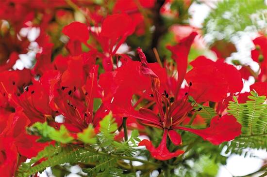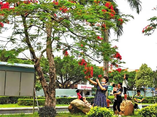 5月,东莞各式夏花怒放,点缀着东莞大街小巷、公园广场,小区内外。连日来,羊城晚报记者走访东莞东城、塘厦及万江等镇街发现,同沙生态园道路边夹竹桃花已经悄然盛开,塘厦迎客大道及多个社区广场的凤凰木更是火艳绽放,而大屏嶂森林公园的大片荷花也是亭亭玉立,竞相绽放。 据了解,目前,东莞市开花的树种主要以凤凰木、短萼仪花、澳洲火焰木、大叶紫薇、刺桐以及兰花楹等居多。“人们对不少开花植物怀有朴素的情感,常常会寄寓情怀。”东莞市林业局总工程师徐正球表示,这是人们亲近自然、崇拜自然的一种体现。林业部门将在改造提升现有森林公园、湿地公园的自然景观基础上,发现和发掘更多的开花植被景观,供市民出游观光。 夏花盛开引市民驻足拍照 14日,记者驱车来到东莞同沙生态公园,入园不久,眼前就不时闪过一簇簇花卉。它们或黄、或白,在林荫道上非常抢眼,引得不少游园的市民驻足拍照,流连忘返。 “这是白花夹竹桃,前面还有黄花夹竹桃。”市民叶先生当天正好带着小孩前来摘草莓,一下车就发现了这些夹竹桃花。叶先生说,这些夹竹桃在生态园路边种了很多,平时没开花并不显眼。今年却开得随处可见。“疫情之后难得出来一趟,现在都是夏季了,还能看到和拍到这么清纯的花,令人高兴。” 除了夹竹桃花,东莞各大森林公园的夏花还有不少,都将陆续迎来盛放期。像银瓶山森林公园的短萼仪花群落、大屏嶂森林公园荷花等等。近日,记者走访大屏嶂森林公园主入口塘厦广场的荷花池看到,池中荷花花色洁白,竞相绽放,有的才露尖角,有的含苞待放,有的则已迎风绽放,被一大片绿油油的荷叶簇拥着,显得清丽脱俗,气质高雅。 市民出游喜欢自然景区公园 去年以来,东莞市大力推进建设168个彩色林项目。据东莞市城市管理和综合执法局相关负责人介绍,这些彩色林项目种植的品种就有夏天盛开的凤凰木、鸡蛋花等。如今,正值夏季,这些树种“装扮”城市的效果渐显。 在塘厦镇迎宾大道万科广场段和富康豪庭段,万江滨江西路金鳌洲塔一带,火艳的凤凰花已经热情绽放。在东莞万江江滨西路阳光海岸路段,记者也看到洁白带黄的鸡蛋花正处盛花期。 14日,记者从东莞市林业局获悉,目前,东莞夏季开花的树种主要以凤凰木、短萼仪花、澳洲火焰木、大叶紫薇、刺桐以及兰花楹等品种居多,主要分布于全市各森林公园、各镇街迎宾大道以及村社区文化广场。特别是凤凰木,去年以来,因为全市大力推进彩色林建设,种得比较多,火艳喜庆,尤以树径10厘米左右的树形最为壮观、漂亮。 “人们对不少开花植物怀有朴素的情感,常常会寄寓情怀。”东莞市林业局总工程师徐正球告诉羊城晚报记者,其中,对凤凰木就是如此,像东莞中学门口种植有凤凰木。每年高考时节,正值凤凰木盛花期,其颜色与高考红榜相互辉映,在人们眼中是非常好的意头。 徐正球表示,这些情感也是人们亲近自然、崇拜自然的一种体现。特别是今年全国暴发新冠肺炎后,人们的这种情怀体现得更明显。现在,越来越多的市民出游,喜欢选择那些植被繁茂、自然环境优美的景区、公园,而对那些人造景观的热情却不那么高就是例证。徐正球表示,作为林业部门,提供丰富多彩的植被景观是我们职责,接下来,林业部门将在改造提升现有森林公园、湿地公园的自然景观基础上,发现和发掘更多的开花植被景观供市民出游观光。