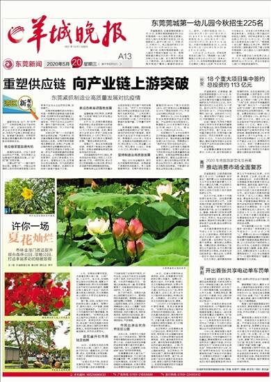5月,东莞各式夏花怒放,点缀着东莞大街小巷、公园广场,小区内外。连日来,羊城晚报记者走访东莞东城、塘厦及