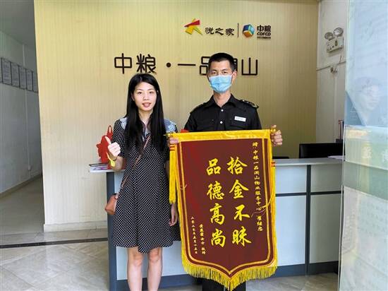 5月12日晚,一品澜山服务中心安全部护管员崔继忠在小区地下车库做日常巡查,发现地面有一个红色袋子,崔继忠本以为是垃圾,就想顺手捡到垃圾桶里。然而,他从敞开的袋子口发现里面还有一个精致的小包。崔继忠打开一看,发现里面竟然全部都是现金,共计40760元。 崔继忠觉得失主丢失那么多钱肯定很着急,于是第一时间向值班领导汇报,通过仔细核查确认,最终确认并联系上失主,将钱物全数归还,失主黄女士感动不已。15日中午,黄女士特地为崔继忠送来一面锦旗表示谢意。“业主丢那么多钱心里着急,及时联系归还都是我应该做的,只是一件小事”,崔继忠多次表示。虽然自己收入不高,捡到的钱差不多是一年的工资,但崔继忠没有丝毫犹豫和后悔。 小区物业经理万勇表示:“崔继忠拾金不昧的事情已经上报给公司总部,公司将会给予相应的荣誉证书和物质奖励,也将号召所有员工向崔继忠学习。” (文/图 胡振华 张金)