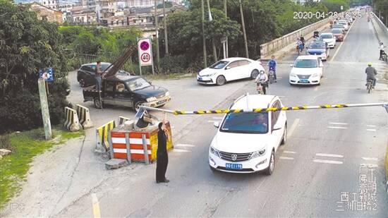 羊城晚报讯 记者欧阳志强,通讯员廖杰毅、潘梓奇摄影报道:近日,高明区三洲旧桥路段上演暖心一幕。有人高高托起倒下的限高架,让过往的车辆得以顺利通过。而这名“托举哥”就是高明公安辅警区晓航,妻子知道真相后既感动又心疼。 当天18时许,一辆货车进入三洲旧桥时,车上放置的货物撞上了限高架。截断的限高架坠落到地面,阻碍了车辆的通行。 此时,区晓航正驾车经此路段前往三洲接妻子下班。“现在下班高峰期,前方堵塞5秒后方车流就有可能拥堵10分钟。”他来不及多想,立即把车靠边停好,上前把限高架高高举起,让堵塞的车辆先流动起来。 路过的司机有的对区晓航伸出大拇指,也有人误以为肇事司机就是区晓航,对其出言不逊。而区晓航只是笑笑,示意其赶快通行,他就这样一只手支撑着限高架,一只手打电话报警求助。 是接妻子下班,还是继续托举?救援人员还没到来,没有人托举的话,仍然会造成交通堵塞。区晓航选择了继续坚持,打电话让妻子步行3公里到三洲桥汇合。不知情的妻子一开始颇有微词,但到达现场看到老公托举的一幕,既感动又心疼。很快,救援人员达到了现场,区晓航才和妻子驾车回家。