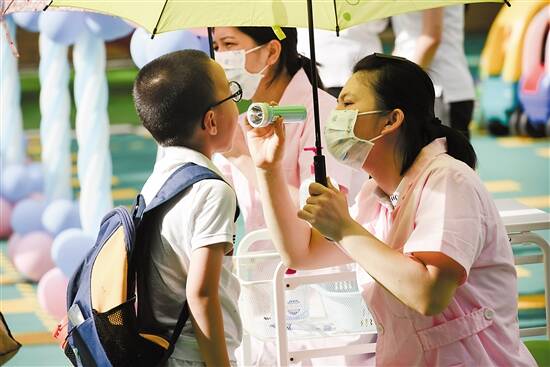 文/羊城晚报记者 沈婷婷 图/羊城晚报记者 王 磊 2日,深圳1537所幼儿园开园。为了迎接这批“迷你小神兽”,幼儿园的老师早早就忙起来了,从制定开学方案到返园演练,老师们努力为孩子们筑起一道坚固的“防火墙”。 记者了解到,昨日不少幼儿园采用了分批返园制,首日到园幼儿多为大班学生,中班、小班学生则将在下周内陆续到园。 分批返园优化配餐制度 “老师好!”6月2日8时,深圳市实验幼儿园(侨香部)陆续迎来返园学生,孩子们在值班老师带领下经过“家长幼儿排队通道”,并用七步洗手法进行手部消毒,开启返园第一天。据悉,返园首日幼儿园仅有大班到园,共有98位学生,中班本周四到园,小班下周一到园。 记者了解到,为保障安全,不少幼儿园采用分批返园制度,除了实验幼儿园(侨香部),深圳市教育幼儿园也如此,2日返园的为大班孩子,下周一再迎接中班和小班的孩子归园。 除了分批、错时返园,开展体育活动和就餐也如此。记者看到,在实验幼儿园(侨香部),大班孩子分两组进行教学活动,一组室内,一组室外。室外组12位小朋友间隔一米率先进行了热身运动,然后分两列绕操场进行了慢跑与慢走。同一时间,其他班级学生也分散在幼儿园的不同位置进行户外活动。深圳市教育幼儿园每个班级学生也是分成两组,分别在室内和户外进行。 午餐时,幼儿园则优化配餐制度,由以前的幼儿自助餐变成教师分餐,老师们戴好头套、手套、口罩,把午餐送到孩子的指定座位上,胃口好的孩子则可以请老师添饭菜。跟中小学一样,班级里每个饭桌都有透明的隔板将用餐的孩子隔开,保证安全。 教职员工全部核酸检测 据悉,在返园工作安排发布前,全市各幼儿园已未雨绸缪,迅速启动开学预案,教职员工提前返岗,开展全面彻底的环境卫生清洁,做好室内空气、地面和物体表面等的消毒消杀工作。 幼儿园均按照防控要求和实际需要配置了相应数量的防控用品。包括口罩、防护服、护目镜、酒精棉片、消毒水等。由专人记录每天用量,及时补充,保证用品充足。开园前,各幼儿园还紧锣密鼓地组织全体教职员工(包括食堂、保安、保洁工作人员等)在返岗前进行核酸检测,检测结果呈阴性并且无疑似状况,方可返校。与此同时,还通过线上与线下相结合的形式,在全体幼儿园教职工中开展卫生保健和心理辅导专业培训。 此外,连日来,全市各幼儿园陆续开展了应急演练,以此提高应急处置能力。据悉,演练场景包括模拟学童入校、在课室上课、午休午餐等,当幼儿或教职工出现异常时,则会带到幼儿园临时隔离区,再次确认幼儿体温健康状况,询问近14天行程和身体状况,并送往医院检查。同时对该幼儿及教职工健康情况进行跟踪登记,及时做好健康情况上报工作。幼儿园还将立即启动新冠肺炎应急预案,做好疑似病例所在区域及公共场所的消毒和终末消毒。 实行自愿弹性入园制度 “孩子终于开学了,真是开心,在家都是在玩,回到幼儿园我就放心了!”一名幼童家长告诉记者,她非常期待返园日的到来,并且也很放心幼儿园的防疫措施。 据悉,根据深圳市新冠肺炎疫情防控指挥部办公室学生返校工作专班通知要求,疫情防控期间,幼儿园实行自愿弹性入园制度。不少幼儿园尊重在园儿童家长意愿,采用全日制、半日制等形式安排儿童返园,对本学期暂不返园的儿童,一律保留学位,并继续为家长提供安全防护教育、游戏活动等线上育儿指导。 福田区教育局负责人告诉记者,福田区密切家园协作,形成防疫合力。开园前,各幼儿园通过视频会议、微信、QQ等形式及时向家长宣传幼儿园疫情防疫工作要求和防控措施,指导家长把好家庭防控关,要求每天送儿童入园前必须对儿童进行体温检测,配合执行幼儿园日常防疫要求及措施,合力保障儿童生命安全和身体健康。针对幼儿心理特点,老师们还制作了防疫动画、小画报等,并将防疫常识融入游戏活动中,通过环境创设和活动提高幼儿的认知能力,缓解返园的分离焦虑。 相关新闻 南山送出“学位礼包” 年内完工4个新校项目 羊城晚报讯 记者李天军报道:记者2日从南山区教育局获悉,该区14个在建学校项目名单于近期公布,这意味着,孩子们将迎来更多优质学位。 据介绍,14个在建学校项目中,南山区将在今年年内完工4项,其中就包括今年南山首次尝试的绿色装配教学楼,即装配式钢结构建筑,涉及荔林小学、南山小学、塘朗小学、学府中学四个校区。 据悉,这四个校区总建筑面积约为7650平方米,其中荔林小学约2450平方米,南山小学约1500平方米,塘朗小学约2100平方米,学府中学约1600平方米。 4所学校新建教学楼均为装配式钢结构建筑,首层为架空层活动空间,二、三层为教室、教师办公室及卫生间。目前,四个校区基础施工已完成,已全面进入主体施工阶段,精装修及园林景观单位已做好进场准备。预计今年8月份完工,以确保今年9月份新学期顺利投入使用。