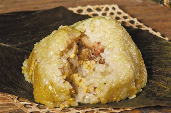 在潮汕地区,双烹粽很是出名,它之所以被称为“双烹”,就在于其馅料是由1/3的甜馅和2/3的咸馅组成,甜味咸味具备,口感丰富。