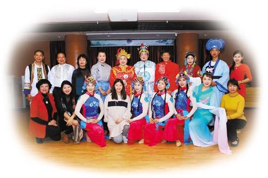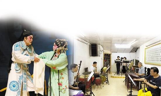 粤剧发烧友登舞台(左图) 鹅城曲艺社成员们在排练(右图) |