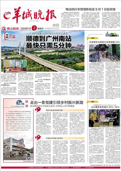 6月30日下午,广佛同城重点项目海华大桥正式通车,这是顺德对接广州南站的重要通道,意味着佛山市顺德区陈村镇到广州南站最快只需5分钟,华阳路“大动脉”全线也完工通车,勒流到佛山新城最快只需10分钟。 减少对广佛两地的地理隔断效应 据悉,总投资6.3亿元的海华大桥工程项目是广佛同城化基础设施项目,依托广佛极点,顺德加快对接广州南站和南沙自贸区,全面融入粤港澳大湾区交通网络的重点工程项目。 海华大桥工程项目起点位于顺德佛陈路东延线,跨越陈村水道,终点接入广州南站双涌路,线路全长2.818公里。其中,大桥全长1050米,主塔高达105.5米,主线采用双向八车道一级公路建设标准,设计速度80公里/小时。 全线分共建段和连接段,其中共建段约1.9公里,由顺德区负责实施,连接段900米由广州新中轴公司负责代建。海华大桥项目总投资6.3亿元。由顺德和广州两地按65%与35%出资比例共建。 海华大桥工程项目是实现广佛同城、顺德区对接广州南站核心区道路网的重要组成部分,工程项目建设可减少陈村水道对广佛两地的地理隔断效应,是实现广佛两地,特别是顺德区与番禺区快速连接的交通运输通道,对推进广佛同城建设的进程具有重要的推动作用。 从30分钟缩短到最快5分钟 值得关注的是,作为顺德对接广州南站最便捷的道路,海华大桥建成通车,从顺德陈村到广州南站的时间将从30分钟左右缩短到最快5分钟,极大地便利周边人员物资交流。 此外,6月30日下午,华阳南路新建工程(荷岳路——三乐路)已全面完工并正式通车。华阳路全线贯通后与勒流港口路的菊花湾大桥对接,从佛山新城到勒流只需10分钟左右时间。 据悉,华阳路是佛山三龙湾三纵五横的骨干路网之一,是连接佛山市禅城区、顺德区、南海区和佛山新城区的干线性主干道。其中,华阳路南延线北起华阳特大桥、佛山市妇女儿童医院,南至佛山一环互通立交华阳路收费站、菊花湾大桥。 本次通车的华阳南路新建工程(荷岳路——三乐路段),北起于荷岳路,南止于三乐路以北150米处,全长2.64公里,以城市主干道标准建设双向8车道,设计时速为60公里/小时。 华阳南路新建工程既是顺德区政府重视的重要民生项目,也是改善城区交通状况、拉大城市框架、提升城市形象的重大举措。 华阳南路通车以后,标志着佛山市南北的华阳南路全线贯通,与已完成的华阳路南延线工程(三乐路——一环段)、菊花湾大桥、华阳南路一环互通立交、三乐路形成复合交通网,进一步加强顺德北部、西南部之间的交通联系,也为佛山三龙湾建设提供重要的交通路网支撑。 此外,6月30日当天,荷岳路——林上路快速化改造一期工程(荷岳路隧道)全线、横五路(一期)工程(佛山一环——佛陈公路段)潭洲水道特大桥、国道G105线良勒路口立交改造工程也实现通车。佛陈互通立交A匝道、FD匝道同日完工。
