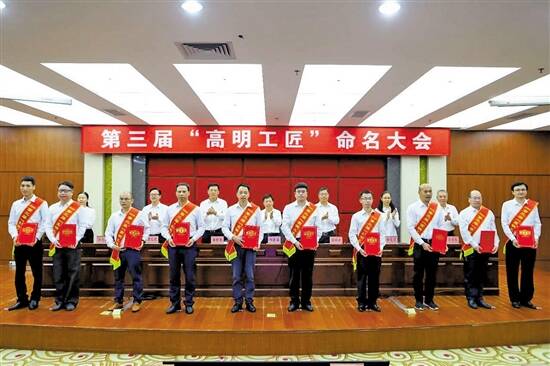 他们分别是佛山市海天(高明)调味食品有限公司MES与机器人推进院院长王来矿,佛山市高明安华陶瓷洁具有限公司技改办主任叶茂盛,广东南亮艺术玻璃科技股份有限公司技术研发总监宋镜钊,广东求精电气有限公司研发中心副总工程师、开关车间主任张传荣,广东意新家居有限责任公司技术总监张国明,佛山高富中石油燃料沥青有限责任公司仪表班班长林清桂,广东溢达纺织有限公司集团研发中心资深工程师袁辉,广东电网有限责任公司佛山高明供电局班组技术员夏志雄,中国移动通信集团广东有限公司高明分公司高级工程师、总经理徐伟兴,佛山市诚德新材料有限公司总工程师、电气及设备部部长戴磊。