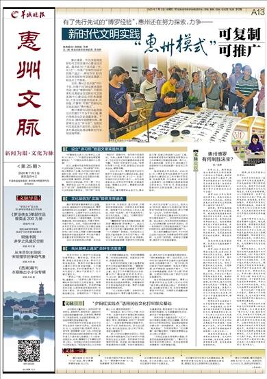 惠州文脉 新闻为眼·文化为脉 <第25期> 2020年7月3日 农历五月十三 羊城晚报报业集团 中共惠州市委宣传部 联合出品 设计统筹 杜卉 2020年