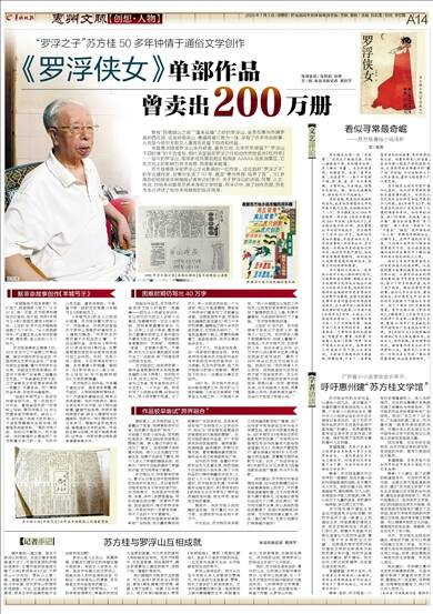 苏方桂创作的文学作品,以通俗小说为主,其中蕴含了丰富的惠州本地民俗和人文风情。广东省小小说学会会长、惠州市小小说学会会长申平近日接受记者采访时,谈了对苏方桂作品的评价及对其作品进行宣传推广的建议。