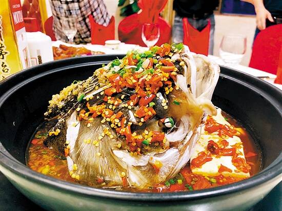 新引进的“湘菜”大厨团队制作的剁椒鱼头 |