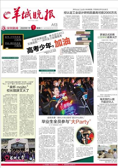 羊城晚报讯 记者沈婷婷摄影报道:7月6日,深圳大学举行了2020年毕业典礼,为了让毕业生的青春不留遗憾,今年学校的毕业典礼规格不降,在继续保持“传统”的同时,在形式上创新采取了“主会场+分会场”“
