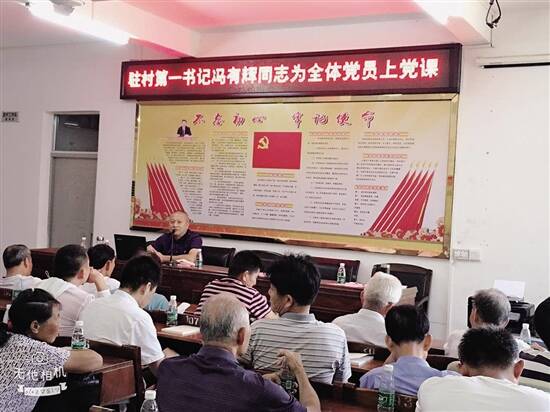 6月30日,冯有辉为客路村村委会全体党员上党课