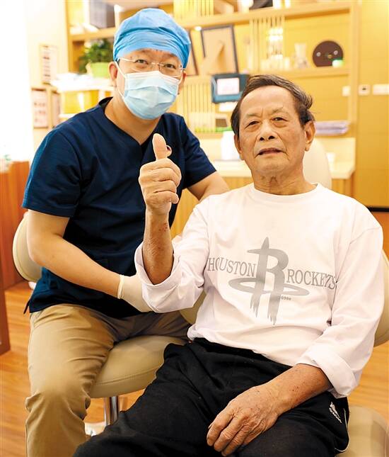 经过一系列口腔检查及德伦口腔博硕口腔专家的联合诊疗,为陈伯伯量身定制了数字化亲骨型无牙颌即刻修复种植牙方案,重建全口新牙。