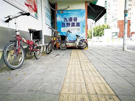 深圳福田中心区道路部分盲道被占用 |