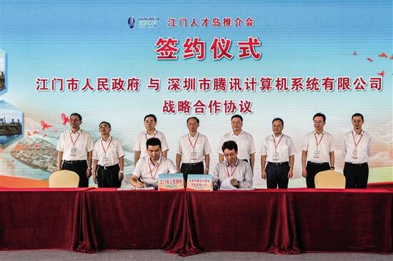 参加推介会的领导嘉宾见证江门与腾讯签约 李伟杰 摄 |