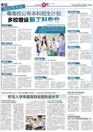 文/羊城晚报记者 陈亮 孙唯 实习生 夏嘉欣 盘淑仪 通讯员 卢庆雷 李伟苗 翟梅杰 杨柳青 陈芃辰 欧少彬 孟楠 随着一年一度的高考落下帷幕,广东各高校于近日陆续公布了今年的本科招