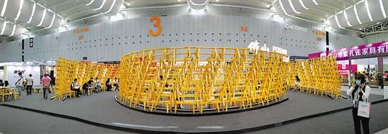 佛山潭洲国际陶瓷展现场,数百张凳子组成“担凳仔” |