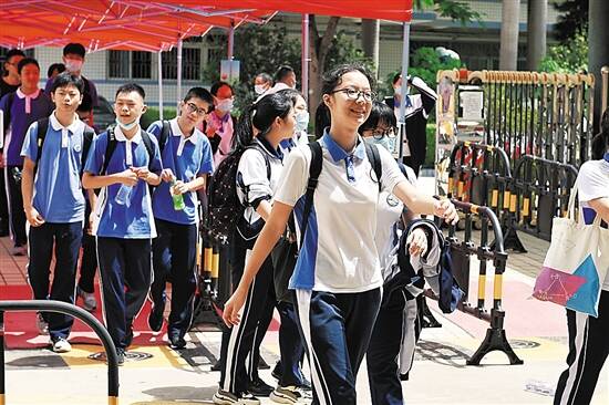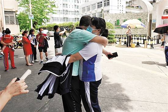 7月20日上午9时许,因新冠肺炎疫情延迟一个多月的2020年深圳中考大幕拉开,第一天考试科目为语文、英语(笔试),第二天为数学、理化(合卷)/历史考试。据悉,今年深圳中考共设151个考点,相比往年,新增了南山区第二外国语学校(集团)海德学校、南山区太子湾学校、宝安区黄麻布学校等10个考点。 按照2020年深圳中考体育考试参考人数,今年中考学子约8万人,今年全市学校安排高中招生计划8.5万人,普高招生计划安排5.62万人,较2019年增加6486人,其中公办普高招生计划增加6047人。 应对短时阵雨考点设置更衣室 据气象部门预测,今年中考期间深圳最高气温达36℃或以上,天气闷热且局地偶有短时阵雨。为应对天气突变,各考点设置了更衣室,考生可准备备用衣服,进场后更换干爽的衣服参加考试。 受新冠肺炎疫情影响,今年中考延后了一个月,昨天各校也积极准备各项防疫设施。其中,宝安中学(集团)初中部考点共设43个试室(含备用),考生数1247人,监考员、考务人员达124人。学校为考生进校设置了专门的通道,并准备好了足够的测温工作人员和额温枪,确保考生进场顺畅。罗湖区翠园初级中学,则在校门口设置了体温检测点、详细的晨(午)检流程图及电力应急发电车。深圳高级中学还贴心提供了便民服务点,为前来助威的考生家长准备了凉茶水。而在红岭中学石厦部考点遮阳棚下,学校为家长和考生准备了扇子、日常药品、水、文具包、风扇。 考生“爸爸团”当起交通指挥员 大考少不了助考团,爸爸妈妈是主力,学弟学妹也积极参与。 20日7时10分,记者在宝安中学(集团)初中部考点看到,不少考生已提前到场,有的考生争分夺秒,正翻开课本准备再复习一遍。考生们信心十足,在现场陪考的家长们,也是喜气洋洋助威。有的身着旗袍、有的戴上了专门印制的逢考必过的口罩,还有的带来了写有逢考必过、以梦为马不负韶华等字样的应援纸板。 在罗湖区翠园初级中学考点外,记者就看到有家长举着定制道具为考生们加油打气;在福田区红岭中学石厦部考点前,有小男孩举着自己的画作给姐姐加油;南山二外集团海德学校中考考点,学校则用大幅的红色电子屏幕写上了对考生的祝福。而龙城初级中学的家委会除了自行组织准备了统一式样颜色的旗袍外,考生“爸爸团”也主动在考点维持校门口的交通秩序。 深圳高级中学校门口的助考家长告诉记者,她们第一天穿红色旗袍,为孩子加油助威,意味着“开门红”,第二天将穿绿色衣服,寓意“一路绿灯”。此外,校园内,还有贴满学弟学妹祝福的背景板,祝愿学长学姐考出好成绩。 链接 中考第一天,考题难不难? 大多考生认为作文题目不难 “我写了深圳40年的发展,这是时代的变迁,是见证城市的美好”“生活中的一切都很美好,就把生活中的点点滴滴写进去”“我写自己的兄弟姐妹之间的和解”“有一次我骑自行车的时候,车子的链子掉了,路上有一个阿伯帮我修好后坚持不要钱,这个事情对我触动很大,生活处处有美好”…… 每年的作文题目都是社会关注和讨论的热点,深圳今年中考作文题是命题作文——《见证美好》,让考生结合实际生活展开联想。大多考生认为题目不难,写起来得心应手,记者在深圳高级中学看到不少考生笑容满面地走出考场,一些可爱的考生还向守候在考场外的父母作出了胜利的手势。 考生刘同学走出考场则给了守候在考场外的妈妈一个熊抱。他告诉记者,语文作文题目很容易,他做得很顺,心情不错。“我觉得美好就是现在,我们的豆蔻年华就很美好,此时此刻也是美好,我写的就是我在学校里的故事,在学校里,和同学们在一起的故事,都是我见证人生美好的开端,我很爱他们,爱我的学校。” 大部分考生与刘同学感觉差不多,“写出自己的真情实感就好了,很接地气,再写几个细节和故事就能完成了,我大概写了40分钟,很轻松。” 几家欢喜几家愁,也有考生表示语文科目在阅读理解上花费了不少时间,导致作文时间大大缩短,“明天我要好好调节心情,希望接下来的考试,我可以把握好时间。” 也有同学告诉记者,看到《见证美好》的作文题心里第一时间想到了今年的新冠肺炎疫情,白衣天使为抗疫而作的斗争就是一种美好,有同学从疫情的发生切入,讲述了医务人员以及抗疫一线工作者的工作之美。