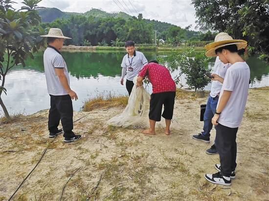 工作人员在现场抽检水产品 |