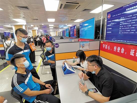 据悉,此次招聘会的参加单位均为佛山市、区级国有企业,共提供168个职位,岗位需求人数为637人,涵盖电气、电子、机械、机电、能源、化工、材料、建筑、给排水、园林、经济、金融、财务、营销、设计、中文、法律、新媒体、人力资源、酒店管理等专业,其中计划招聘应届高校毕业生284人。 除亲身到现场招聘会外,求职者还可以通过“佛山人才网”同步关注该场招聘会并在线投简历。据统计,此次招聘会入场求职者273人,线上投递简历197份,系统匹配推荐326人(次),薪酬水平在6800元/月左右。 为确保线下招聘安全有序,中心专门制定了工作方案,重点部署疫情防控措施,配备了消毒液、洗手液、口罩等防疫物资,对入场的招聘单位数和求职人数采取了限流措施,参会企业数控制在50家,场内求职者最多不超过200人。要求招聘单位和求职者均须提前预约,并通过“亮绿码+戴口罩+量体温”流程后方能进场。招聘大厅设置了面试轮候区,防止求职者扎堆面试,并要求招聘单位与求职者全程佩戴口罩进行“一对一”洽谈。中心还专门制作了招聘求职、疫情防控注意事项的宣传声带和视频,在招聘大厅循环播放,引导招聘求职人员自觉遵守疫情防控规定。 据介绍,按照《佛山市促进国有企业吸纳高校毕业生就业工作实施方案》的要求和安排,佛山市人社部门将与市国资委、国有企业建立起“稳就业”长效联络机制,落实佛山2.0版“就业和促进就业若干政策措施”,鼓励国有企业积极开发岗位扩招应届高校毕业生。同时充分发挥“互联网+”作用,搭建“智能化”“云招聘”线上平台,定期组织国有企业专场招聘活动,及时面向社会发布国有企业招聘信息。对属于重点用工企业的国有企业,由各区人力资源社会保障部门落实安排人社服务专员,实施“一对一,面对面”专门服务。接下来,佛山市人社部门将举办离校未就业高校毕业生线下专场招聘会、民营企业助力高校毕业生就业专场招聘会等活动,充分调动市场主体的积极性,促进高校毕业生稳定就业。