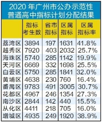 记者统计,荔湾、增城的区属指标率分别是41.8%和38.9%,这两个区的学生通过指标到校考上区属高中的可能性更高,更能享受到指标到校带来的红利。