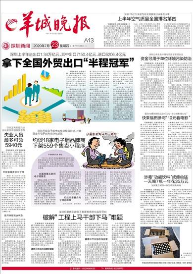 1957年10月1日创刊 深圳新闻 2020年7月23日 星期四 庚子年六月初三 区域新闻全媒体编辑部主编/责编 文俏 / 美编 湛晓茸 / 校对 谢志忠 报料热线