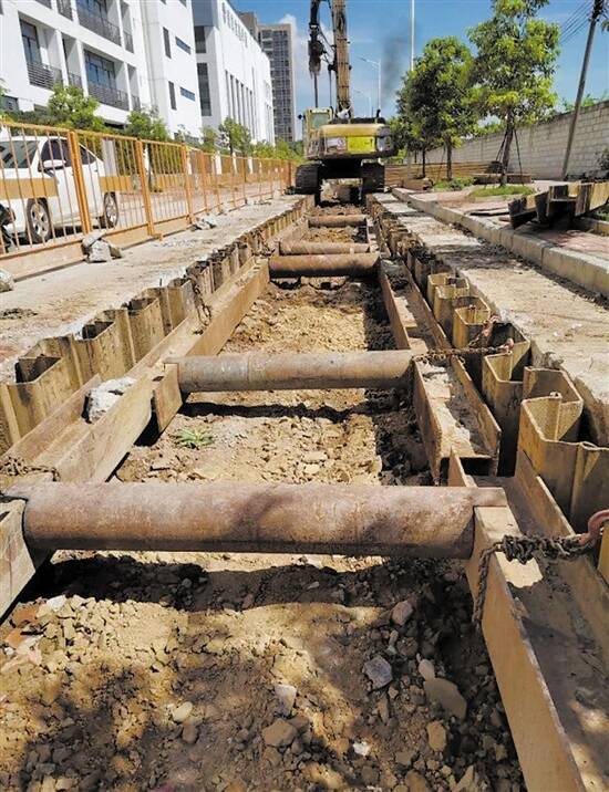 羊城晚报讯 记者余晓玲、通讯员沙田宣摄影报道:为进一步加强水污染防治工作,从源头上治愈“水污染”顽疾,改善和提升水环境质量,2020年,东莞市沙田镇计划在已建成截污主干管、次支管的基础上,新建雨污分流管网约445公里,进一步提升污水收集率和污水厂的进水浓度,工程总投资8.3亿元。近日,投资约3亿元的微支管一期工程建设正式启动,工程范围基本覆盖全镇各村(社区),并与河涌整治相结合,推动河涌水质、面貌进一步改善。 记者在沙田镇银通路看到,微支管网项目施工方在施工区域设置围挡,破挖路面进行管网铺设,工人们操作大型机械设备加紧施工。据镇水务运营中心工程师介绍,微支管网工程项目涉及全镇,微支管网主管总长约130多公里,接户管网约310多公里。按照施工计划表,整个标段预计今年年底可以完工。 据了解,微支管网建设能够进一步提高污水收集效率,对生活污水处理厂的提质增效起到明显作用。目前,沙田开展的微支管网工程,主要是把雨水跟污水分成两套系统,雨水进雨水管直排河涌河道,污水则流入污水管后进入污水处理厂进行集中处理。 沙田微支管一期工程正有序进行中,将新建微支管网63公里,立管和接户管近200公里,工程基本覆盖全镇各村(社区),总投资约3亿元;东莞市东江下游片区水污染综合治理工程(沙田镇污水收集系统完善工程),对微支管网(一期)未涉及到的区域进行补充,将新建微支管网71公里,立管和接户管112公里,工程基本覆盖全镇各村(社区),总投资约5.3亿元。 据镇水务运营中心有关负责人介绍,沙田微支管网工程项目将与河涌整治相结合,建成之后河涌的水质和面貌也将会得到进一步改善。