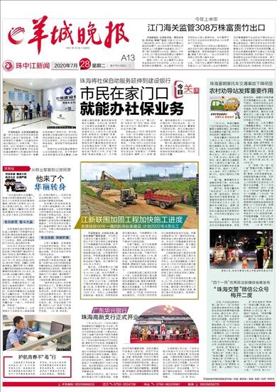 1957年10月1日创刊 珠中江新闻 2020年7月28日星期二 庚子年六月初八 区域新闻全媒体编辑部主编/责编 黄铁安 / 美编 刘苗 / 校对 何绮云 手机报料:18