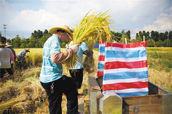 文/图 羊城晚报记者 余宝珠 通讯员 杨绪成 金黄的稻谷,在田野里轻轻摇摆着,空气里弥散着清新的稻香。近段时间以来,东莞天气晴朗,位于东莞寮步镇的60多亩“Y两优902”品种的水稻,迎来了大丰收,收粮60000多斤。 走进稻田体验稻谷收割 7月28日,“体验稻谷收割,助力乡村振兴”为主题的寮步镇机关党组织水稻收割体验主题党日活动在寮步镇水稻田举行,市民群众一起分享粮食丰收的喜悦。 在丰收的季节,阳光照射在田野上,稻穗迎风摇曳,掀起一阵阵的稻浪。无人机飞往高空俯瞰连片的水稻,就像一张编织整齐的金黄色地毯。当天下午,寮步镇水稻收割体验主题党日活动启动仪式,300多名党员走进水稻田,纷纷拿着镰刀体验稻谷收割。 稻谷收割现场,机关党员们走进田间地头感受美丽田园,躬身劳作体验农民群众的艰辛和不易。随着此起彼伏金黄色的稻浪,党员干部们手握镰刀撸起袖子,热火朝天地进行水稻的收割体验。镰刀在稻秆上“刷刷”划过,不一会一捆水稻就收割完成了,稻田后方是一排脚踏式稻谷脱粒机,大家分工合作,将割好的稻谷进行分离采收。一时间,整个田间人潮涌动,机器轰鸣,稻浪翻滚,现场稻香弥漫、欢声笑语,到处洋溢着一派丰收喜悦景象。 “我老家是农村的,小时候一直在跟这些水稻田打交道,这次体验收割水稻,仿佛又回到了童年,感触很多。”在收割现场,党员蒋荣军说,收割水稻不仅能体验农民的辛苦,知道了粮食的来之不易,同时能磨练个人意志,受益匪浅。 据悉,此次活动以开展水稻收割体验主题党日活动为契机,充分发扬党员干部不忘初心、用实干担当助力乡村振兴的优良传统,为打造懂农业、爱农村、爱农民的“三农队伍”奠定坚实基础。 预计8月中旬种植晚稻 据了解,寮步镇水稻田位于寮步镇金富路与寮城中路交叉地块,紧靠东部快线东莞汽车城出口处,地理位置优越,地块总面积约60多亩。改造前是寮步镇政府征用后的搁荒建设用地,主要由村民占用,种植果蔬为主,村民在地块上违规搭建大量窝棚及堆填生活垃圾,环境脏乱差及安全隐患较为突出。为积极响应省、市政府提出“田间窝棚”整治和2020年镇街种粮任务的号召,寮步镇政府以“美丽田园”实施乡村振兴战略为契机,在保留现状土地性质与提升环境的前提下,通过整治地块、拆除田间窝棚十多间、清理非法畜禽养殖十多户、开展基础设施建设、种植水稻及观赏花卉、新建农耕科普文化等一系列理念措施,将其打造成集环境提升、休闲观光、科普教育于一体的东莞首个以学农、劳作、科普为主题的实践基地,传承并弘扬优秀农耕文化,助力推进东莞乡村振兴。 今年年初,寮步农林水务局认真组织抓好水稻种植的前期准备工作。于4月中下旬进行水稻的插秧,此次水稻种植选用的水稻为“Y两优902”品种的水稻,经过3个多月的精心管理与虫害防治,这片60多亩的稻田迎来了大丰收,产量达60000多斤。 接下来,寮步镇将继续执行镇街种粮任务,巩固和提高粮食生产能力,保障国家粮食安全。目前,寮步农林水务局正积极筹备晚稻种植,预计8月中旬开始种植。