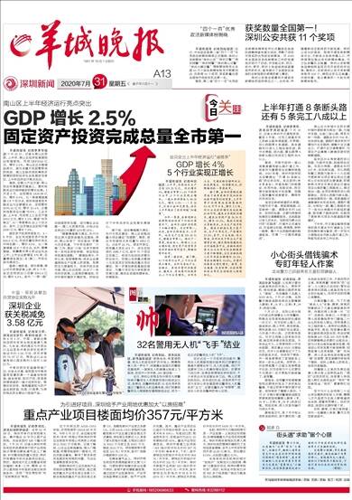 深圳新闻 1957年10月1日创刊 2020年7月31日 星期五 庚子年六月十一 报料热线:83288112 手机报料:18520686633