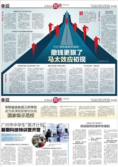 文/羊城晚报记者 蒋隽 电视、电梯、广播、抖音……继去年的暑期营销大战之后,这个热夏,K12教育市场再次烽烟四起:低价引流课与正价课涨价并存;有教育机构暑期排满课赶进度引来家长不满;营销