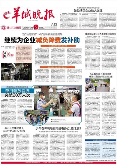 1957年10月1日创刊 珠中江新闻 2020年8月5日 星期三 庚子年六月十六 手机报料:18520686633 江门:0750-3524738 中