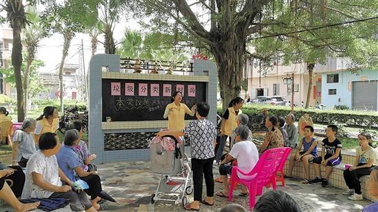 文/图 羊城晚报记者 陈卓栋 通讯员 江讯 谭耀广 位于江门市江海区礼乐街道的英南村,近几年成为了远近驰名的善治乡村。近日,记者走访该村时看到,村内建设着法治公园,法治文化宣传元素随处可见;社工志愿者正在村里的法治广场榕树下开讲,向村民讲授垃圾分类知识;而在旁边的草地上,几位老人家正在打拳健身。 江门市文明办负责人介绍,近年来,英南村按照乡村文化振兴工作要求,以江门市乡镇创文强基提质工程为抓手,努力营造民风淳朴、积极向上的良好氛围。目前,该村已获得了全国乡村治理示范村,广东省民主法治村、卫生村、宜居示范村等荣誉称号。 村民文化生活有了好去处 乡村文化振兴是乡镇创文工作的重要任务。记者了解到,今年4月江门印发的《江门市乡镇创文强基提质工程实施方案》就提出了丰富群众文化生活阵地和积极培育文明乡风民风等工作任务。在英南村,群众文化生活阵地主要依托于该村的新时代文明实践基地。该村党总支书记胡日强介绍,村里的新时代文明实践基地占地12600平方米,包括党建公园、法治公园、文化体育公园,同时配套了老人幸福院、幼儿园、卫生站、文体健身、公共厕所等服务设施,以及在建中的英南村乡贤馆。 其中,英南村的法治公园借助村内体育公园原有的亭、桥、廊等载体,通过富有美感的雕塑、石刻、钢化造型、法治游戏项目、宣传栏、牌匾等形式,形成一个有特色、高规格的法治公园,让群众在休闲娱乐的同时感悟法治精神、学习法治知识、树立法治信仰。 记者也了解到,英南村是礼乐知名的“乡贤村”,村里的乡亲贤达一直有慷慨资助各项事业发展、积极为村民排忧解难的优秀传统。胡日强说,去年开始英南村建设面积270平方米的乡贤馆,希望挖掘乡贤的精神价值和时代意义,培育富有英南地方特色的乡贤文化,吸引更多的乡贤关注参与家乡发展,营造全乡“知乡贤、颂乡贤、学乡贤”的良好氛围。 此外,英南村还在历史建筑较为集中的“聚兴里”进行改建、邀请艺术家打造“七彩南堡”人文乡村风景区等……特色鲜明的文化生活阵地让村民和周边群众的文化生活有了好去处。 新时代乡规民约润物无声 有了阵地,还需要积极培养文明的乡风民风。 在英南村村委大楼,记者看到了一个村民积分管理宣传栏,上面记录着村民们的积分情况:门前屋后环境卫生干净加5分、配合村里开展“三清三拆”加5分……“每天出门三四趟,村前屋后都要绕两圈,看看干不干净。”村民刘锡顺表示,根据村规民约积分管理制度细则,累积的分数可以换取生活用品,去年他领到的奖品就是一大桶食用油。 记者了解到,从2018年起,英南村结合当地文化特色,融入社会主义核心价值观,在两村村民代表大会讨论和广泛征求群众意见的基础上,制定13条35点乡规民约,将过去的口头约定俗成变成符合本村实际的、可操作的规章制度。 这份村规民约出台后,通过积分奖惩等方式,一点点改变着当地的乡风民风。“以前没有村规民约,村里屋前屋后到处堆放杂物垃圾,个别邻里关系不和睦。”村民胡叔说,自从制定村规民约后,家家户户对门前屋后的保洁实行“三包”,积极筹资筹劳搞好篮球场、村道建设等公益事业,实现了集体利益的最大化。 胡日强介绍,英南村通过开展“最美村民评选”“人居环境整治评比”“村规民约宣传活动”“每月村民积分评选”等活动,掀起文明乡风热潮,树立爱老敬老、勤劳致富、讲文明、正家风的先进典型,以道德文化力量教化村民、凝聚人心。 “把乡村文化搞好,民心齐了,乡风正了,才能一心一意谋发展,振兴乡村。”胡日强说,英南村将继续抓“乡村文化振兴”,保护好传统文化,提升公共文化效能,让文明之风传遍英南的家家户户。