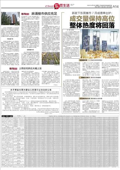 东莞生活·地产 2020年8月6日/星期四/ 区域新闻全媒体编辑部主编 责编 田恩祥/ 美编 陈炜/ 校对 谢志忠 A14