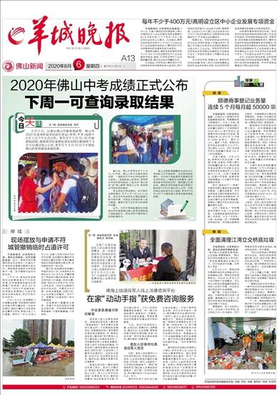 文/图 羊城晚报记者 周哲 8月5日,记者从佛山市教育局获悉,佛山市2020年高中阶段学校招生考试(简称:中考)成绩于8月5日下午正式公布,考生可于5日15:30开始查询成