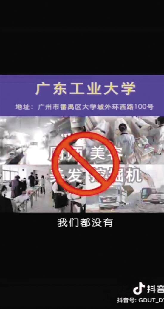 记者留意到,该片的“土味”风格充分借鉴了蓝翔技校宣传广告模式。而在2019年招生季,以“本科技术哪家强,上海交大在闵行”为开场白制作的上海交通大学招生宣传片同样收获了一波流量。今年7月22日,广东工业大学官方抖音账号也发布了类似的招生视频,视频中“金句”不断,“你不用烦恼找不到对象,因为大家都找不到”被网友笑称“一语道出真相”。