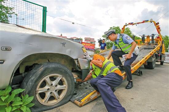 民警拖走路上的“僵尸车” |