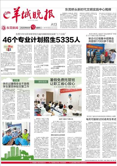 中职每所学校最多报2个专业 2020年,东莞市高中阶段学校招生录取根据考生志愿、综合素质评价等级、考查科目等级和学业考试成绩总分分批择优录取。公办中职学校、公办技工学校、中高职三二分段班、中职留学班录取安排在第二批,每个学生最多可填报3所中职学校,每所学校最多报2个专业。 录取注册后进行一次补录,补录可报2所中职学校,每所学校最多报2个专业。民办中职学校和民办技工学校录取安排在第三批,每个学生在第三批次中最多可填报3所中职学校,每所学校最多报2个专业。录取注册后不进行志愿补录,只进行电脑自动补录。 为减轻初中毕业生就读中职学校的经济压力,2012年开始,国家实行中职教育免学费政策,2015年起分两年提高免学费补助标准。东莞市全面贯彻落实中职教育免学费政策,并进一步扩大免学费范围,把全市中职学校全日制正式学籍一、二、三年级在校生中所有农村(含县镇)学生、本市户籍学生、本省“双转移”地区学生、城市家庭经济困难学生、台湾户籍学生、香港户籍学生、澳门户籍学生、华人华侨子女和残疾学生纳入免学费范围(艺术类相关表演专业学生除外),其中东莞自行扩大范围的本省“双转移”地区城市户籍非家庭经济困难学生、港澳台户籍学生和华人华侨子女所需的免学费补助资金,由市财政全部承担。对在公办中职学校就读的符合免学费条件的学生免除全部学费;对在民办中职学校就读的符合免学费条件的学生按3500元/年的标准减免学费。 “三二分段”计划招生5335人 经省教育厅批准,东莞市从2010年开始举办“三二分段”中高职贯通培养工作。2020年东莞市共有16所中职学校的46个专业与省内高职院校实施“三二分段”中高职贯通培养,共招生5335人。经省教育厅同意,2018年起东莞理工学校的数控技术应用、机器人应用与维护、汽车运用与维修、电子技术应用、软件与信息服务等5个专业,东莞市经济贸易学校的计算机应用专业,东莞市商业学校(东莞市幼儿师范学校)的学前教育专业,与东莞职业技术学院开展中高职五年连贯培养,5年均在中职学校进行。 记者了解到,目前,中职学生可以通过“三二分段”联合培养、“3+技能证书”考试和高职院校对口自主招生考试等方式升入大专或本科院校就读。 近九成莞籍中职毕业生升入高校 据悉,2018年,东莞市共有5923名中职学生被高校录取,其中被本科高校录取13人;2019年,全市共有7873人参加高职高考,成功被高校录取的共有7469人,录取率达94.86%,其中被本科高校录取25人。2020年,东莞市中职毕业生中,有8291人报名参加升学考试,其中本市户籍学生3959人,成功被高校录取的本市户籍学生有3694人,录取率为93.3%。今年共有4139名本市户籍中职毕业生,即相当于10名本市户籍中职毕业生中就约有9人升入高校继续深造。 截至8月5日,2020年东莞市中职学生被高校录取人数达7945人,其中被本科高校录取46人,直接就业有9839人,升学就业率达97.2%。 就在近日,2020年普通高考体育单招公布了录取结果,东莞市电子科技学校体育部2017级运动训练班9名学生被本科院校录取。除了2人进入中南大学、华南理工大学两所“985”“211”重点大学外,还有4人被广州体院录取。